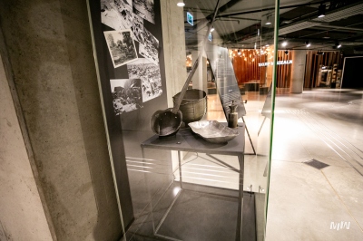 W ramach kolejnej odsłony cyklu „Wejście w historię”, na poziomie -3 MIIWŚ prezentujemy przedmioty codziennego użytku z okresu powojennego: czerpak wykonany z niemieckiego hełmu, wiadro i karmidło dla kur wykonane z fragmentów zestrzelonego amerykańskiego samolotu oraz młynek ręczny wykonany z łuski artyleryjskiej.