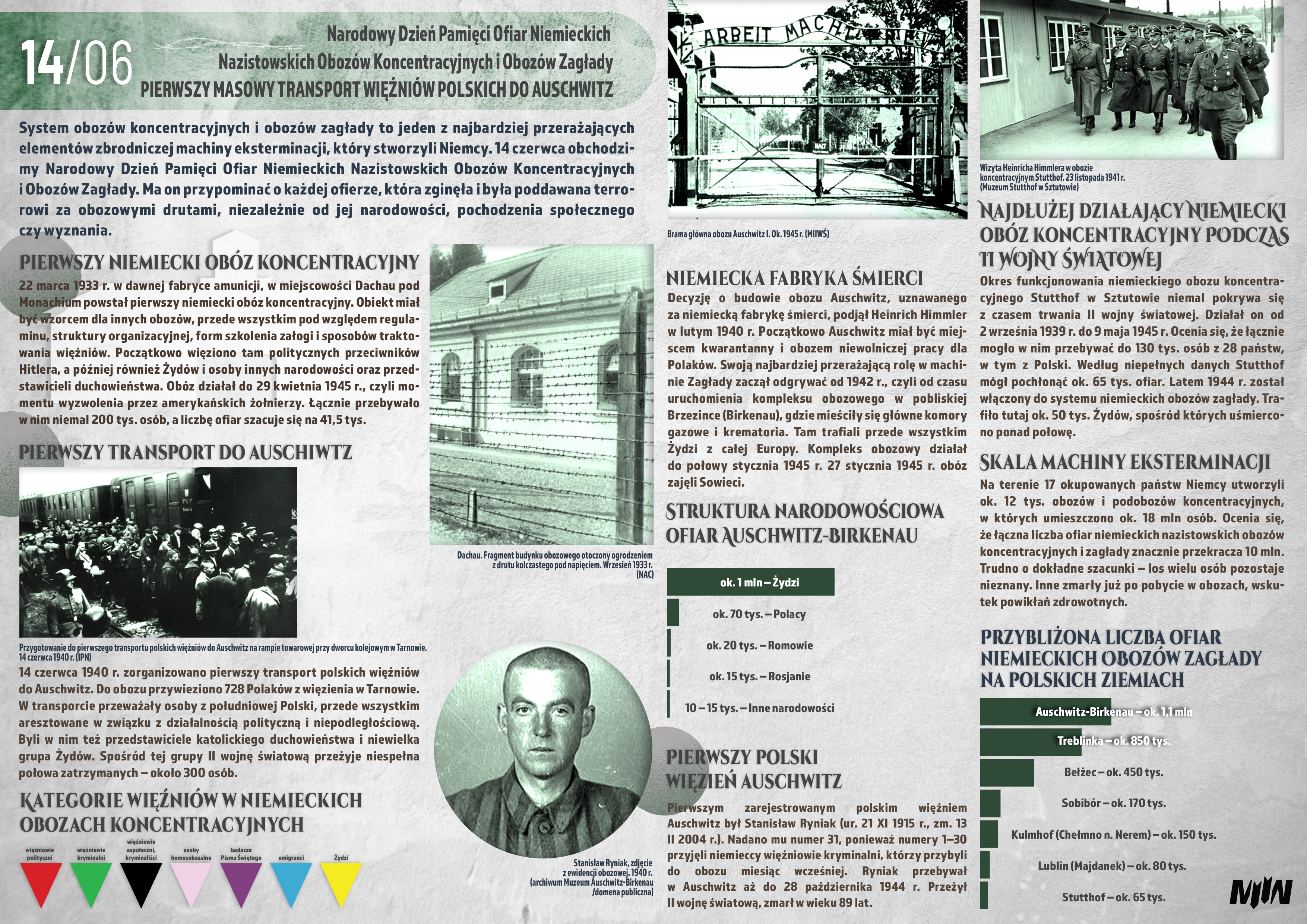 System obozów koncentracyjnych i obozów zagłady to jeden z najbardziej przerażających elementów zbrodniczej machiny eksterminacji, który stworzyli Niemcy. 14 czerwca obchodzimy Narodowy Dzień Pamięci Ofiar Niemieckich Nazistowskich Obozów Koncentracyjnych i Obozów Zagłady. Ma on przypominać o każdej ofierze, która zginęła i była poddawana terrorowi za obozowymi drutami, niezależnie od jej narodowości, pochodzenia społecznego czy wyznania.