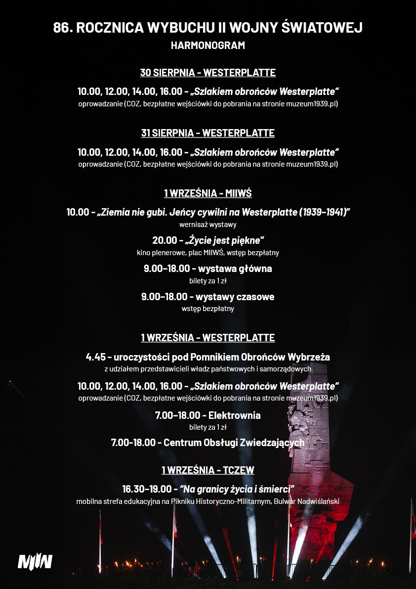 1 września 1939 roku zapisał się na kartach historii jako początek najtragiczniejszego konfliktu w dziejach ludzkości. Życie straciły miliony ludzi. Całe narody zostały skazane na cierpienie. Wartość ludzkiego życia i zdrowia, a także godność człowieka i jego podstawowe prawa zostały zakwestionowane. Wojna miała swój symboliczny początek właśnie tu – w Gdańsku, atakiem niemieckiego pancernika Schleswig-Holstein na placówkę Wojskowej Składnicy Tranzytowej. Dzisiejsza pamięć o tym dniu to nie tylko wspomnienie bohaterstwa polskich żołnierzy, ale przede wszystkim refleksja nad trudną drogą do wolności i odpowiedzialnością za zachowanie pokoju. Przygotowane przez nas wydarzenia przypominają historię wojny i losy jej uczestników. Jak co roku włączamy się również w obchody rocznicowe, dając wyraz szacunku dla poprzednich pokoleń i budując świadomość obywatelską kolejnych. Dbałość o pamięć jest naszym wspólnym obowiązkiem.