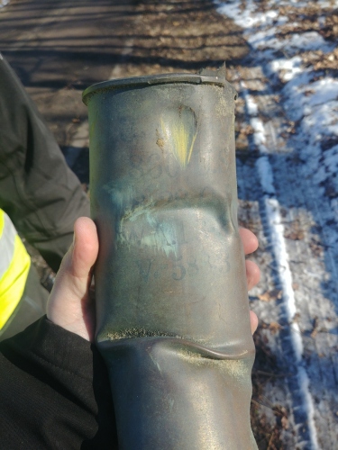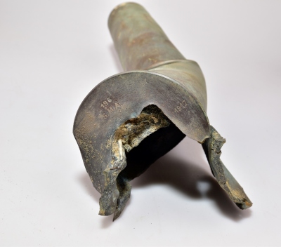 Wspomnianym zabytkiem jest łuska kal. 76,2 mm do rosyjskiej armaty polowej wz. 02, tzw. „putiłówki”, stanowiącej wyposażenie składnicy. Wykonana jest z mosiężnej blachy, na jej płasku dennym wybite są oznaczenia 196 S.M.A., OF w okręgu, pięcioramienna gwiazda ze znajdującą się nad nią cyfrą 1 oraz 1917; na ścianie zewnętrznej wykonano napisy tuszowe umieszczone w pięciu rzędach. Pierwszy jest nieczytelny, treść pozostałych jest następująca: „860-US3”; „8-28 DP”; „W.A. 1 3.-31”; „V.588.3”. Dzięki tym oznaczeniom wiadomo, że łuska została wyprodukowana w 1917 r., była elaborowana w marcu 1931 r. w Wytwórni Amunicji nr 1 w Warszawie, a proch użyty jako ładunek miotający wytworzono w 1928 r. w Państwowej Wytwórni Prochu w Pionkach. Ślady zniszczeń widoczne na powierzchni łuski wskazują, że amunicja nie została wystrzelona, a jej uszkodzenia powstały w wyniku eksplozji.