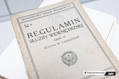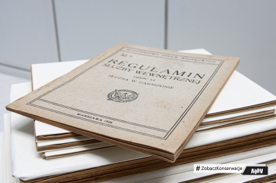 Dzisiaj w ramach cyklu #ZobaczKonserwacjeMIIWŚ prezentujemy przebieg konserwacji czasopism oraz książek z okresu przedwojennego i II wojny światowej, takie jak: pismo miesięczne „Tęcza”, „Regulamin służby wewnętrznej”, Józef Piłsudski „Pisma, mowy, rozkazy”, Joseph Conrad „Między lądem a morzem”. Przed zabiegami konserwatorskimi wszystkie książki poddano dezynfekcji w celu zniszczenia mikroorganizmów, które zaatakowały obiekty.