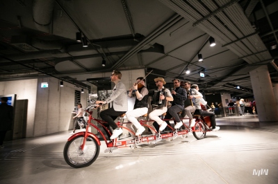 Po godzinie 21.00 Big Bike Orchestra wprawiła w ruch nie tylko sześcioosobowy rower. Zwiedzający podrygiwali w takt muzyki granej m.in. na akordeonie, klarnecie i kontrabasie.