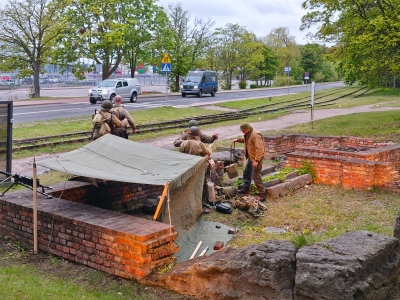 Rekonstruktorzy ze Stowarzyszenia Twierdzy Chełmno, w umundurowaniu i wyposażeniu żołnierzy Wojska Polskiego, znajdowali się na stacjach gry terenowej rozgrywającej się na obszarze byłej Wojskowej Składnicy Tranzytowej i pilnowali poprawnego wykonywania zadań przez uczestników zabawy.