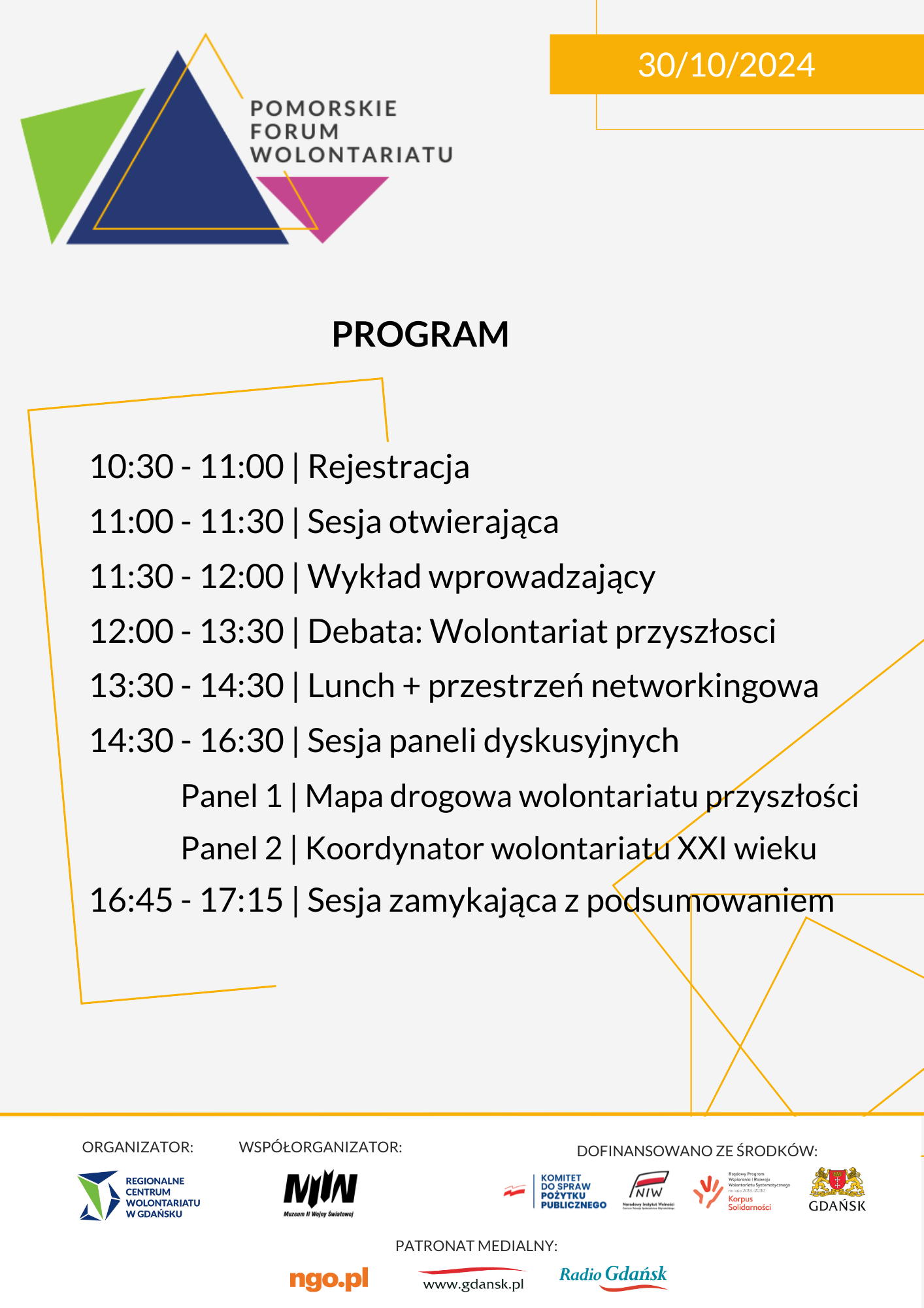 W programie na uczestników czekają debata, panele dyskusyjne i przestrzeń wymiany z aktywnym udziałem i zaangażowaniem uczestników wydarzenia. Wspólnie z uczestnikami będziemy dyskutować i zastanawiać się nad współczesną rolą wolontariatu i zapleczem, jakie jest nam niezbędne (nie tylko w III sektorze) dla tworzenia korzystnych warunków do jego optymalnego funkcjonowania i rozwoju (w tym nad rolą koordynatora wolontariatu).