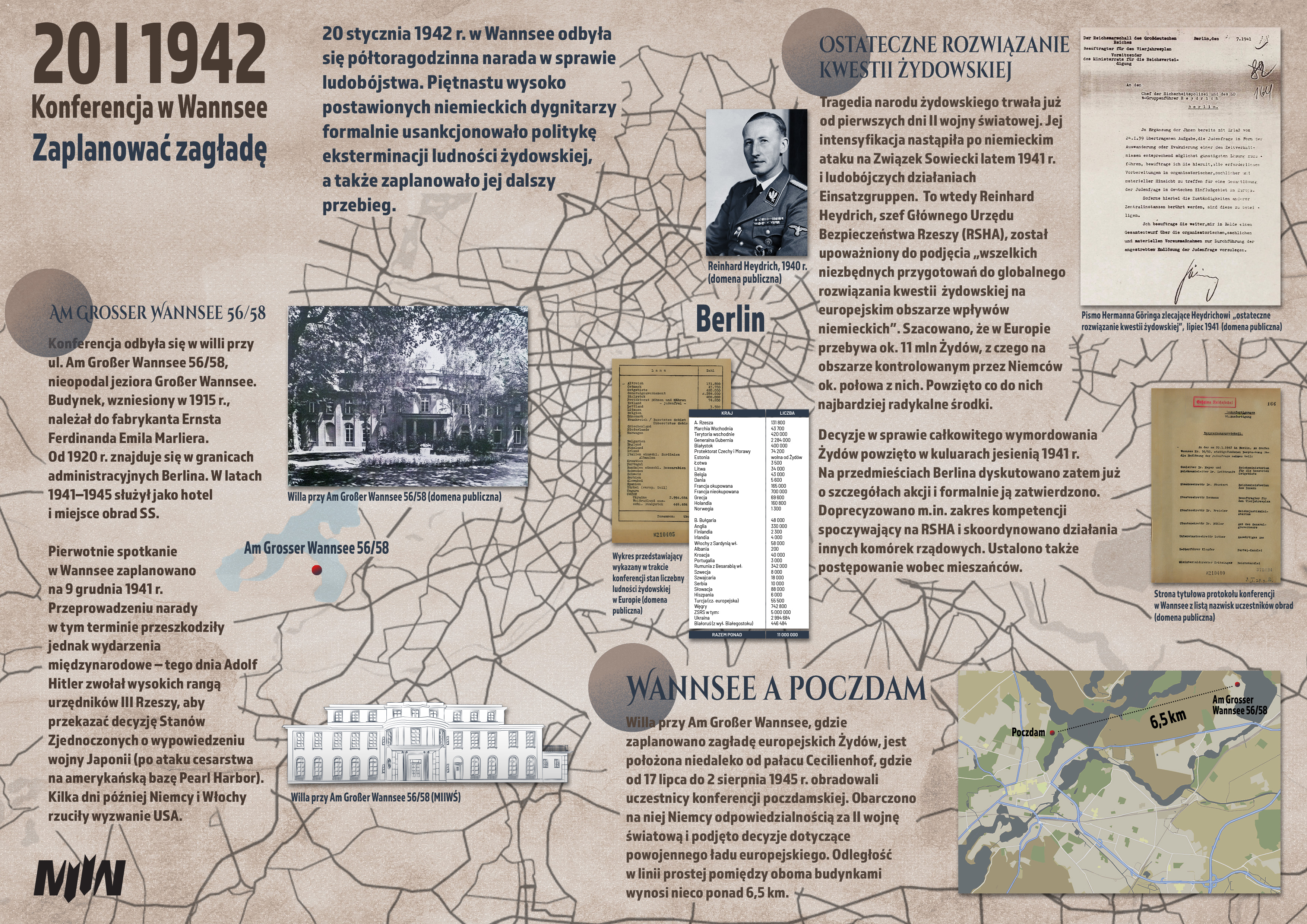 20 stycznia 1942 r. w Wannsee odbyła się półtoragodzinna narada w sprawie ludobójstwa. Grono piętnastu wysoko postawionych dygnitarzy niemieckich formalnie usankcjonowało politykę eksterminacji ludności żydowskiej, a także zaplanowali jej dalszy przebieg.
