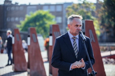 Ta ekspozycja dotyczy osoby, która na trwałe wpisała się już w działalność Muzeum II Wojny Światowej. Cztery lata temu w 80. rocznicę agresji sowieckiej na Polskę, tutaj w tym miejscu (...) odsłanialiśmy ten piękny pomnik, który znajduje się na trasie zwiedzania dzisiejszej ekspozycji. Witold Pilecki to osoba która patronuje aktywności Muzeum, to osoba która stanowi punkt odniesienia właściwie do wszystkich obszarów naszej aktywności (...) kilkanaście obrazów tego dzielnego człowieka, pokazują z jednej strony jak dobrym był człowiekiem, ojcem, mężem, osobą bardzo zaangażowaną w kreowanie życia społecznego w miejscu gdzie mieszkał (...) Witold Pilecki szedł na śmierć pogodzony ze swoim losem, niosąc bagaż wielkiej odwagi i wielkiego spełnienia w walce o niepodległy byt Rzeczpospolitej Polskiej. Te wszystkie twarze Witolda Pileckiego na naszej wystawie "Twarz odwagi" Państwo zobaczycie.