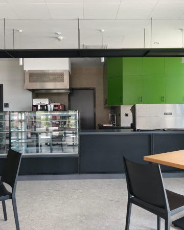 Lokal na poziomie 2- usługi gastronomiczne typu: kawiarnia, cukiernia, coffee bar, coctail bar, w tym napoje alkoholowe, snack bar (serwowane lub samoobsługa według ustaleń najemcy).