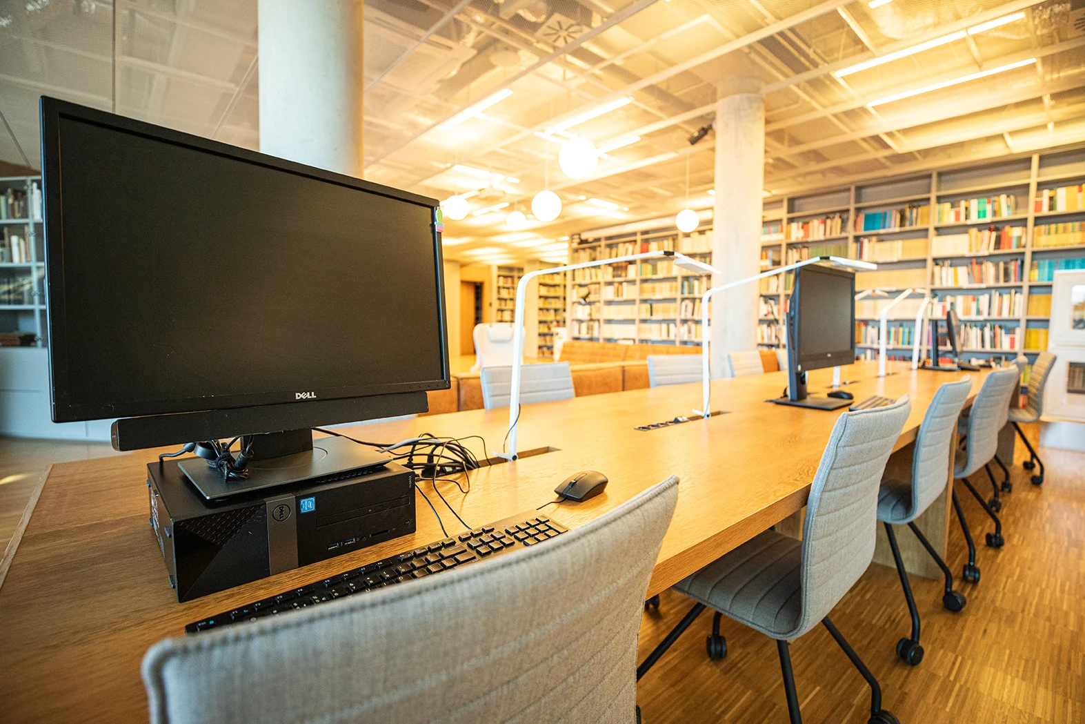 Czytelnia jest wyposażona w 16 stanowisk, w tym 3 komputerowe.
