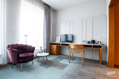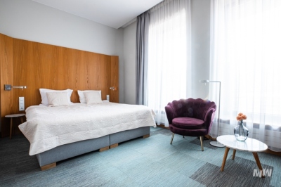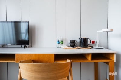Pokoje są przeznaczone dla dwóch osób. W sypialni znajdują się dwa łóżka, które można połączyć w jedno. Pokoje są wyposażone w biurko, fotel oraz pojemną szafę. W łazienkach znajduje się kabina prysznicowa lub wanna.