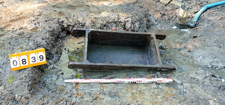 W tym sezonie archeolodzy przebadali wschodni odcinek w miejscu planowanej drogi technicznej, zlokalizowany na północ od cmentarza Żołnierzy Wojska Polskiego i wartowni nr 5. Niegdyś był to obszar przybrzeżny z ukształtowaną w XVIII w. wydmą. Zarejestrowano nieliczne ślady zagospodarowania tego terenu: rów melioracyjny biegnący w kierunku północnym, śmietniki z okresu funkcjonowania kurortu oraz jeden powstały po kapitulacji WST, do którego wrzucono przedmioty pochodzące z willi oficerskiej. Odsłonięto kabel telefoniczny, najprawdopodobniej łączący wartownie nr 4 i 5, oraz odcinek niemieckiej sieci elektrycznej. We wschodniej części wykopu znaleziono pocisk artyleryjski kal. 150 mm oraz liczne odłamki amunicji tego kalibru mające związek z powojennym składowaniem i detonowaniem na terenie półwyspu materiałów wybuchowych i niebezpiecznych. Przebadano również kolektor służący do odprowadzania wód opadowych. Miał formę regularnego dołu o prostokątnym dnie, do którego od północy dochodziła ceramiczna rura, a od południowego zachodu rodzaj płytkiego rowu. Obiekt, wykonany w okresie kurortu i wykorzystywany jeszcze w czasie WST, po kapitulacji składnicy potraktowano jako jamę śmietnikową i zasypano gruzem wartowni nr 5. Wśród brył betonu znaleziono drobne elementy wyposażenia wartowni, takie jak baterie, fragmenty łącznicy i instalacji elektrycznych.