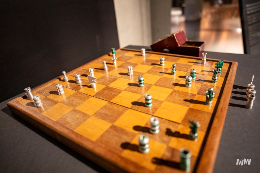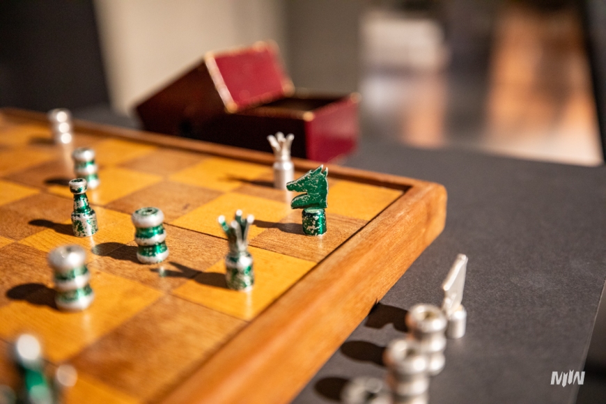 W ramach kolejnej odsłony cyklu „Wejście w historię” na poziomie -3 MIIWŚ prezentujemy szachy należące do Stanisława Bronisława Leszczyńskiego ps. Vigil, oficera kontrwywiadu AK i powstańca warszawskiego. Bierki powstały w jednym z obozów, w którym więziony był Stanisław Leszczyński.
