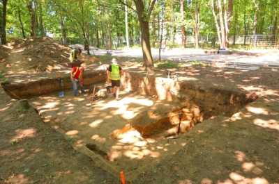 Odsłonięto relikty betonowych fundamentów tzw czerwonego muru i ustalono jego prawidłowy przebieg. Ponadto odkryto opaskę kamienną stanowiącą falochron wzniesiony najpewniej w drugiej połowie XIX w. W trakcie prac znaleziono głównie elementy amunicji karabinowej, w większości niemieckich łusek z okresu końca wojny.