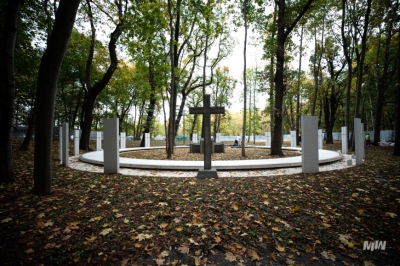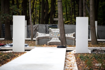 Budowie założenia cmentarnego, oprócz kontynuacji badań archeologicznych, towarzyszyły prace mające na celu uczytelnienie reliktów wartowni nr 5 oraz willi oficerskiej, a także odtworzenie części historycznego ciągu komunikacyjnego z 1939 r. Ze względu na trwające wykopaliska oraz przygotowania związane z przekształceniem koncepcji architektonicznej w projekt wykonawczy działania budowalne rozpoczęto w maju 2022 r. Prace nad przedsięwzięciem zakończono na przełomie września i października. W tym czasie uzyskano także zgodę Wojewódzkiego Inspektoratu Nadzoru Budowlanego na użytkowanie cmentarza.