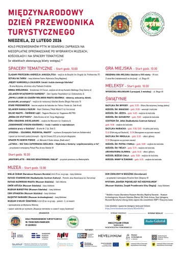 W ramach wydarzenia ponad 50 Przewodniczek i Przewodników PTTK oprowadzi uczestników nieodpłatnie po wybranych muzeach, kościołach i trasach tematycznych w całym mieście. W obiektach biletowanych wystarczy nabyć bilet wstępu – przewodnik jest w pakiecie. Nie obowiązują zapisy – wystarczy przyjść na miejsce zbiórki.